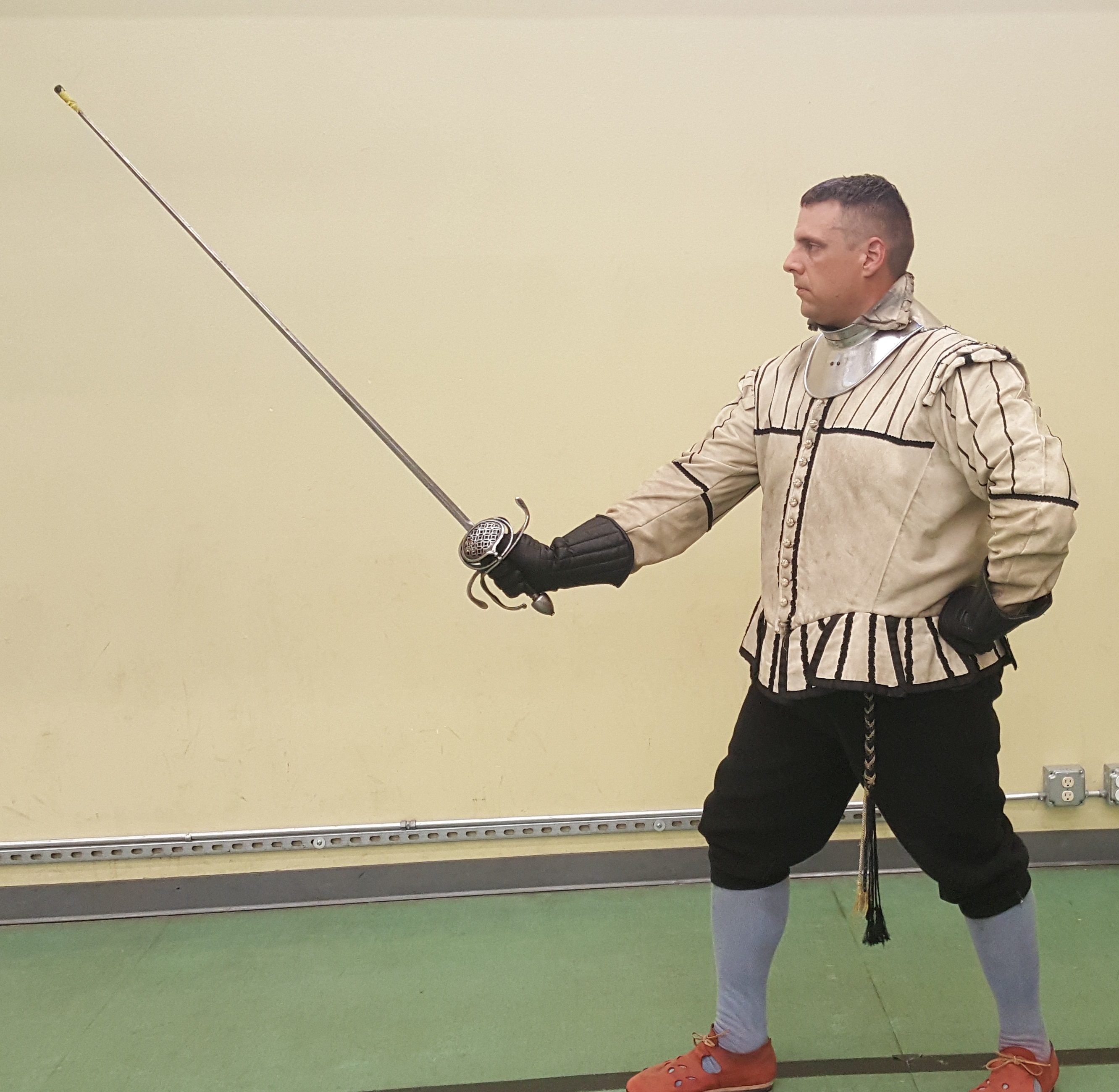 First off, let's look a bit at what the intent is of how you are standing. I refer to this generally as presentation or presenting the sword. You want to approach the fight with as much caution as possible. ALWAYS start out of measure. ALWAYS assume the other guy is better, faster and smarter than you are. Better a pleasant surprise than something worse! Historically, we are looking at what amounts to an honorable fight between educated men of means. Men who paid good money to associate with a school or a master, so we are really talking about professionals here. There shouldn't be an element of fear in what you are doing or why you are there, so first understand that if you are terrified, you will probably do a lot of things wrong. There is nothing natural or normal when it comes to sword fighting. Normal people don't do this, it's not natural to lean in to a cut, and the foot work is something you have to train at. What this means for you is that you need to train out normal habits and such. As an expert professional fighter, you would be expected to have been drilled into exhaustion and muscle memory reactions would probably be the norm. Your untrained and "Natural" reaction is probably the worst option for you.
