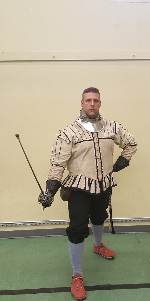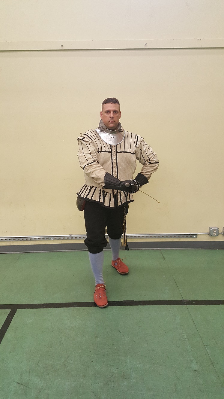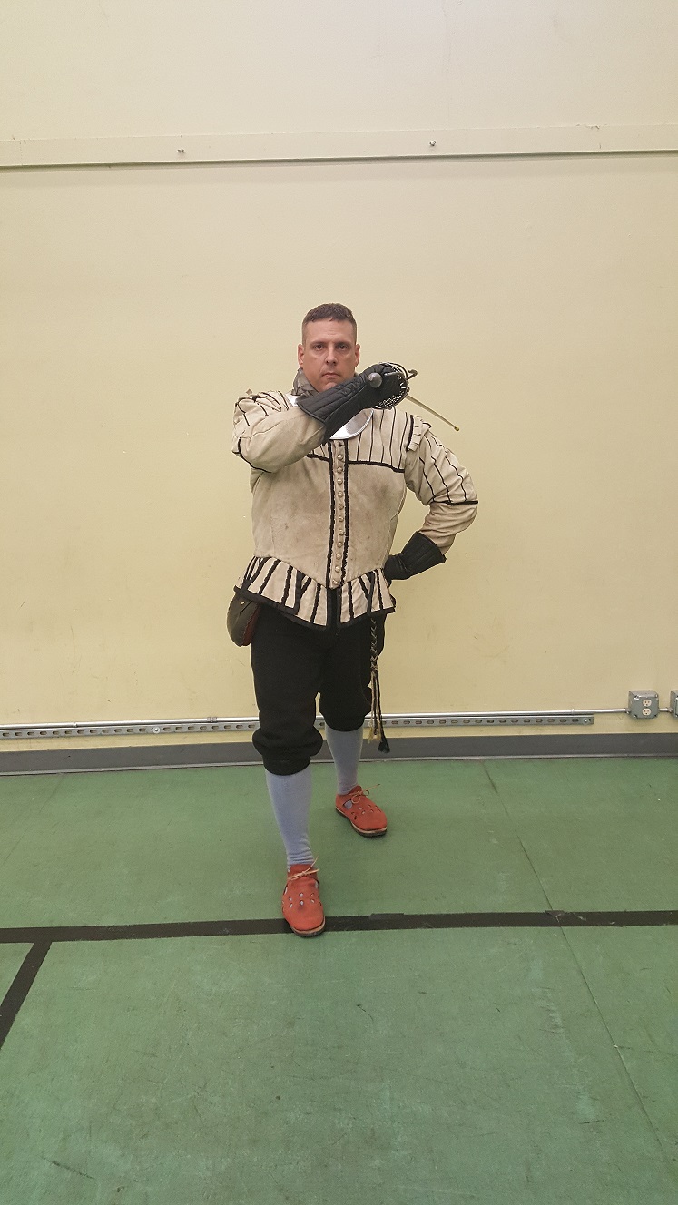 defense. There is going to be a little bit more play with the foot. Let me also take a minute to introduce a nuance in the fight. Pivoting around the sword. In the first instance, if catching a parry to the outside line, twisting the hips with the upper body to the right, in time with the parry can help throw a little bit of a body void in with the counter. It is always a good idea to not just rely on the parry for protection. Twisting a little or moving forward or backward as tempo and measure dictate is always advised. In the quote above, this is a kind of drill done with dagger, but a second control with the dagger, or the offhand or a control with the blade, the motions with body and foot are the same. Remember, it is an important element when layering all this together that each kind of act is self contained. You should be able to do the exact same kinds of motions with the sword regardless what your secondary is. One constant that Saviolo has in much of his work is to return shot for shot. If you are attacked with a stoccata, return with a stoccata, etc.