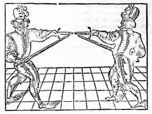 Grasping these concepts before going further will be very important to using this style. The foundations that are noted here are relative directly to the fight of Saviolo. It is important to understand that Saviolo is using method since it has direct bearing on what he is espousing. Keeping this in mind, respect your prior experience in fencing, but try to hold to what is being offered here since it could be different and may not feel comfortable. Also, it will probably contradict itself from time to time and also directly conflict with what might be known as "Modern" fencing. This is normal.